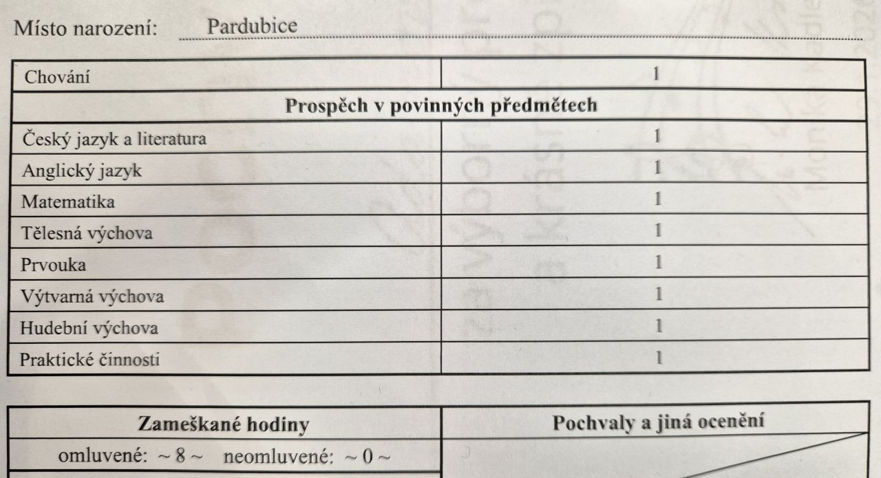 1.A - 1.vysvědčení