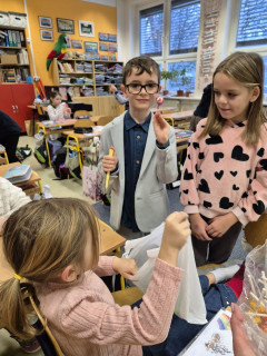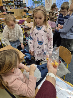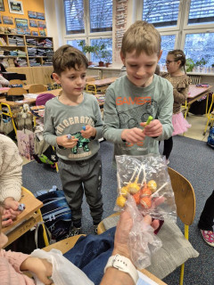 Dnešním dnem jsme slavnostně ukončili 1.pololetí. Společně jsme zvládli první školní krůčky, nástrahy písmenek i číslic, úspěšná byla i naše pěvecká premiéra v podobě vánočních koncertů. Dnešní den byl i prima v tom, že si pro vysvědčení přišla naše nemocná spolužačka, kterou jsme celý měsíc , díky nechodící sádře, neviděli. A tak slavnostní předání vysvědčení bylo i prima setkáním s dlouhodobě nemocnou spolužačkou, která kamarádům přinesla malé dárečky.