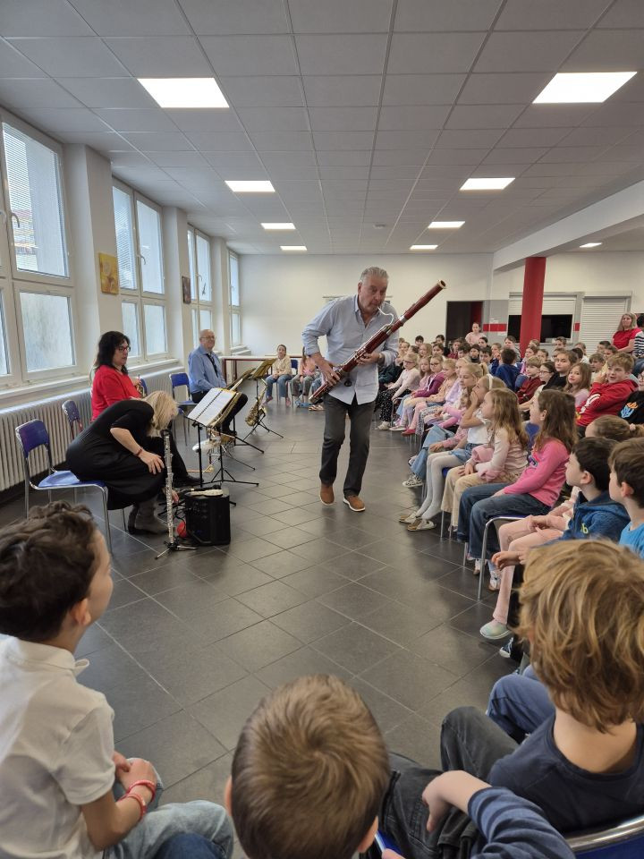 Jako správná hudební třída i my se seznamujeme s nástroji v orchestru. 30.3. jsme měli možnost s ostatními spolužáky slyšet pohádku O Sněhurce od Východočeského dechového kvinteta. Nejen že jsme měli krásný hudební zážitek, ale dozvěděli jsme se také mnoho o dechových nástrojích, o kterých se právě učíme. Společně jsme si zazpívali písničku a také ji zkusili zadirigovat.