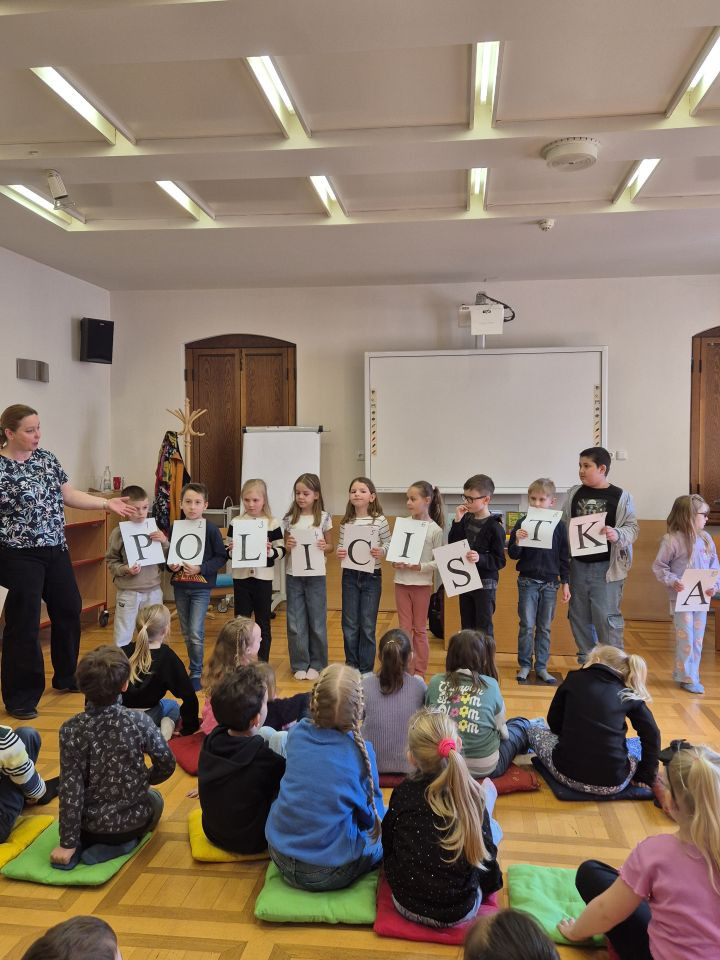V pátek 17.4.2026 jsme se opět vypravili do Krajské knihovny v Pardubicích, kde jsme se tentokrát setkali se spisovatelkou Zuzanou Pospíšilovou, která nás seznámila se svou obsáhlou tvorbou pro děti. Společně jsme si zahráli hry s písmeny a i zkusili zdramatizovat část příběhu. Zopakovali jsme si také jak se chovat v knihovně a ke knížkám všeobecně.