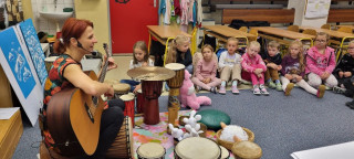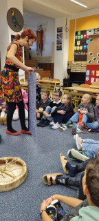Muzikoterapeutická pohádka Ouškem v mechu se krásně hodila do našeho projektového týdne o stromech. Poznali jsme jak se prohání vítr mezi stromy, jak dupe ježek, jak se lesem pohybuje zaječí rodina, seznámili jsme se s moha novými nástroji a jejich zvukem, měli možnost i na nástroje zahrát a vyzkoušet je. Pohádka Markéty Havlové se nám moc líbila a těšíme se na další.