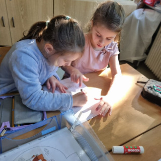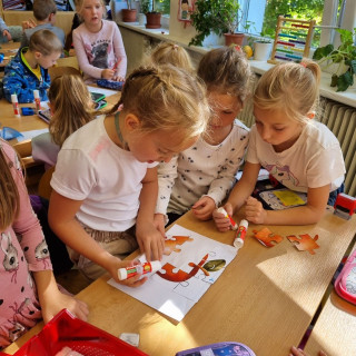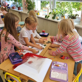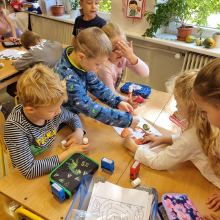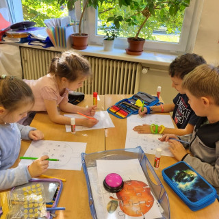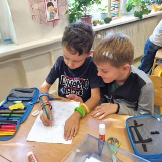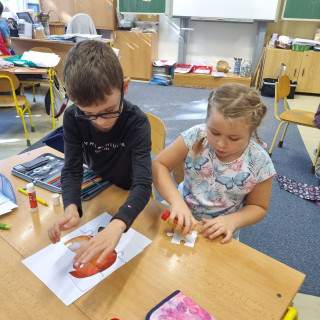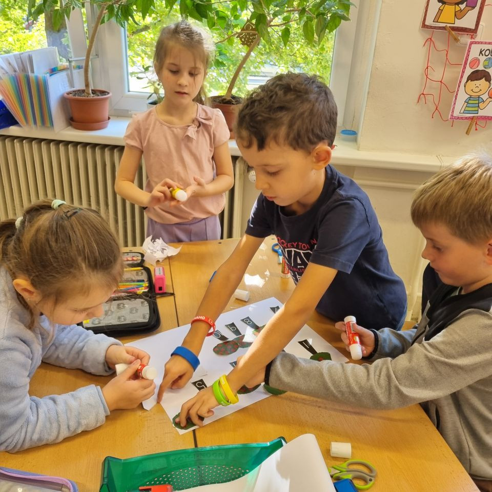 Práce ve skupinkách moc bavila, ještě musíme zapracovat trochu na tišším povídání u práce, ale napoprvé jsme to zvládli na 1*.