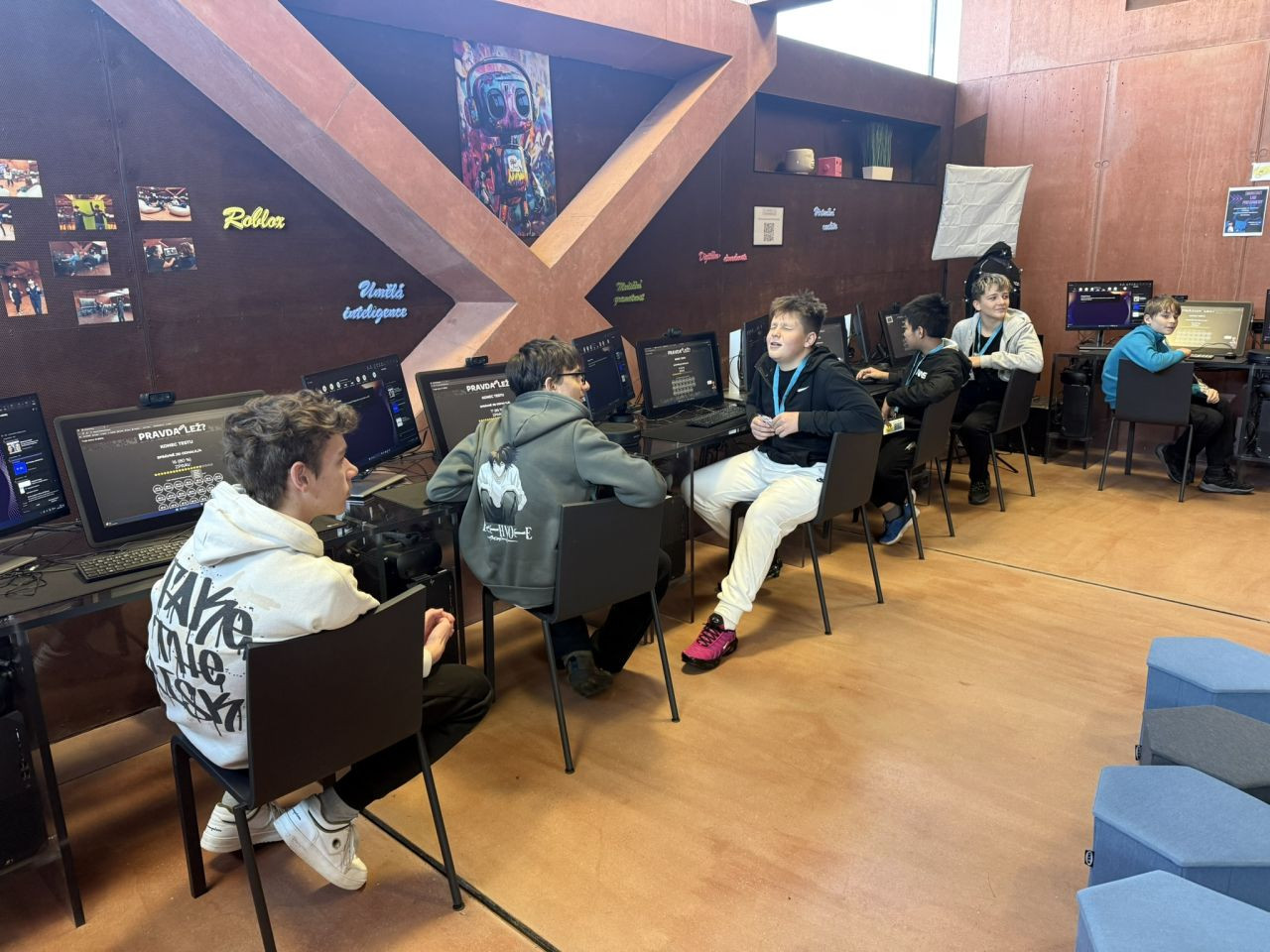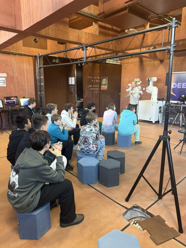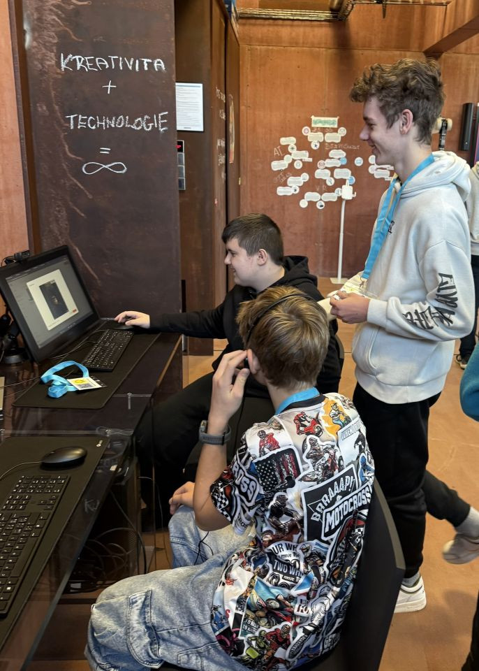 Žáci třídy 7.D se vydali na vzdělávací exkurzi do moderního centra Sféra v areálu Automatických mlýnů v Pardubicích. První skupina se zúčastnila interaktivního programu „Zelená magie aneb Fotosyntéza na vlastní listy". Žáci si vyzkoušeli práci s mikroskopem, zkoumali rostlinné listy a pomocí pokusů objevovali, jak rostliny vyrábějí kyslík a energii. Dozvěděli se, proč je fotosyntéza klíčová pro život na Zemi a jak důležitou roli hrají rostliny v přírodě. Druhá skupina mezitím absolvovala IT program „Deepfaky a jiné výmysly". Žáci poznali, jak funguje umělá inteligence při tvorbě videí a obrázků, naučili se rozpoznávat falešný obsah a uvědomili si, jak je důležité kriticky pracovat s informacemi na internetu. Exkurze byla plná objevování, technologií a zábavných pokusů, díky kterým si žáci rozšířili své znalosti z přírodopisu i informatiky. |