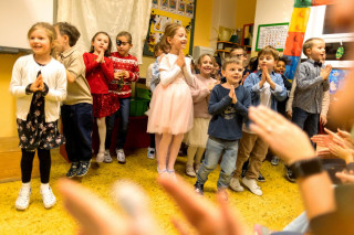 Prvňáčci se poprvé představili rodičům na vánočním vystoupení, které pro nás bylo víc než jen školní akcí. Byl to výsledek několika týdnů společné práce, při které jsme si užili i spoustu legrace. Vše vznikalo postupně- v angličtině jsme spojili to, co už umíme , s tím, co máme rádi a děti si poprvé vyzkoušely mluvit a zpívat na "jevišti" v cizím jazyce. Spojili jsme angličtinu, dramatiku a hudební výchovu, kterou mají děti moc rády.