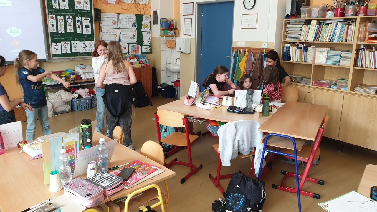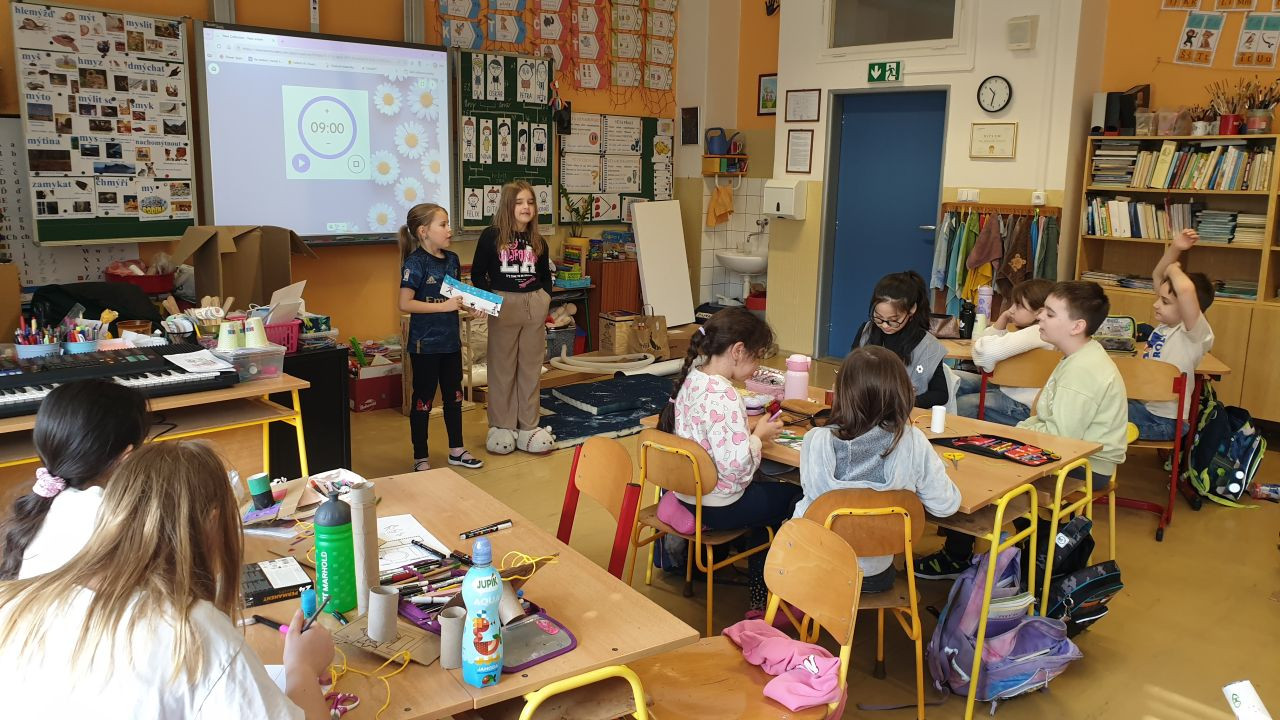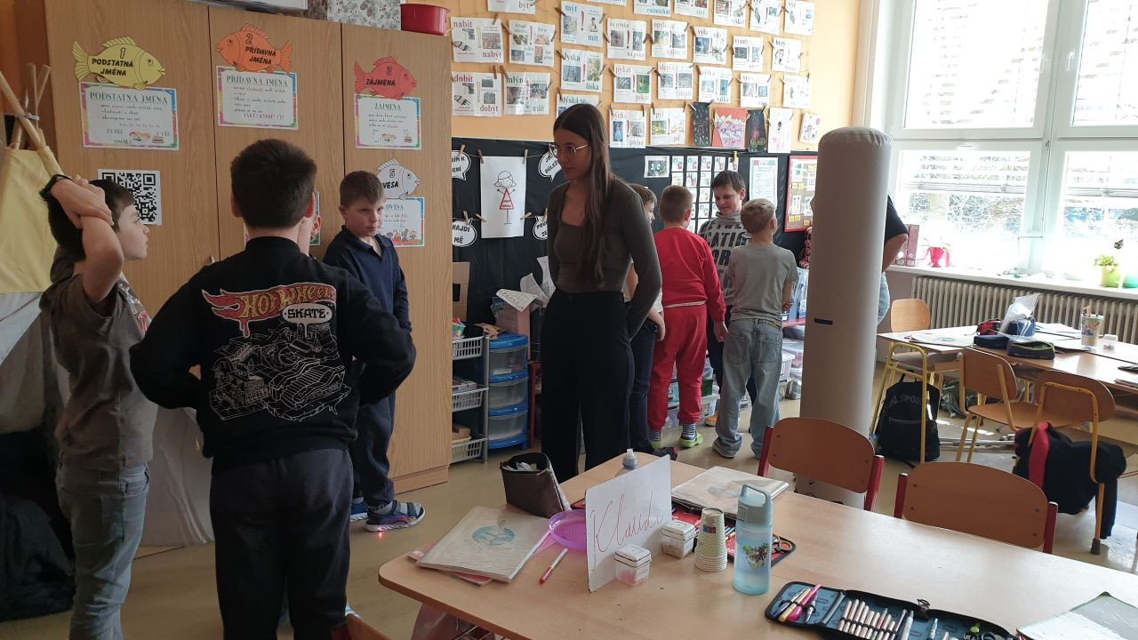 A aby toho nebylo málo, tak koncem měsíce jsme si ještě užili učení naruby - přišli k nám osmáci Roman a Max, kteří si pro nás připravili hodinu prvouky a perfektně ji odučili. Klukům moc děkujeme, moc nás to s nimi bavilo.