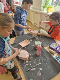 V projektu Kreativní učení jsme nejprve zkoumali svět kolem sebe. Udělali jsme si fotoaparát a "fotili" momentky, které jsme následně převedli do příběhu. Poté jsme si začali tvořit našeho třídního golema. Sami jsme zvědaví, jak se nám povede.