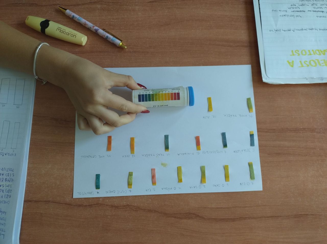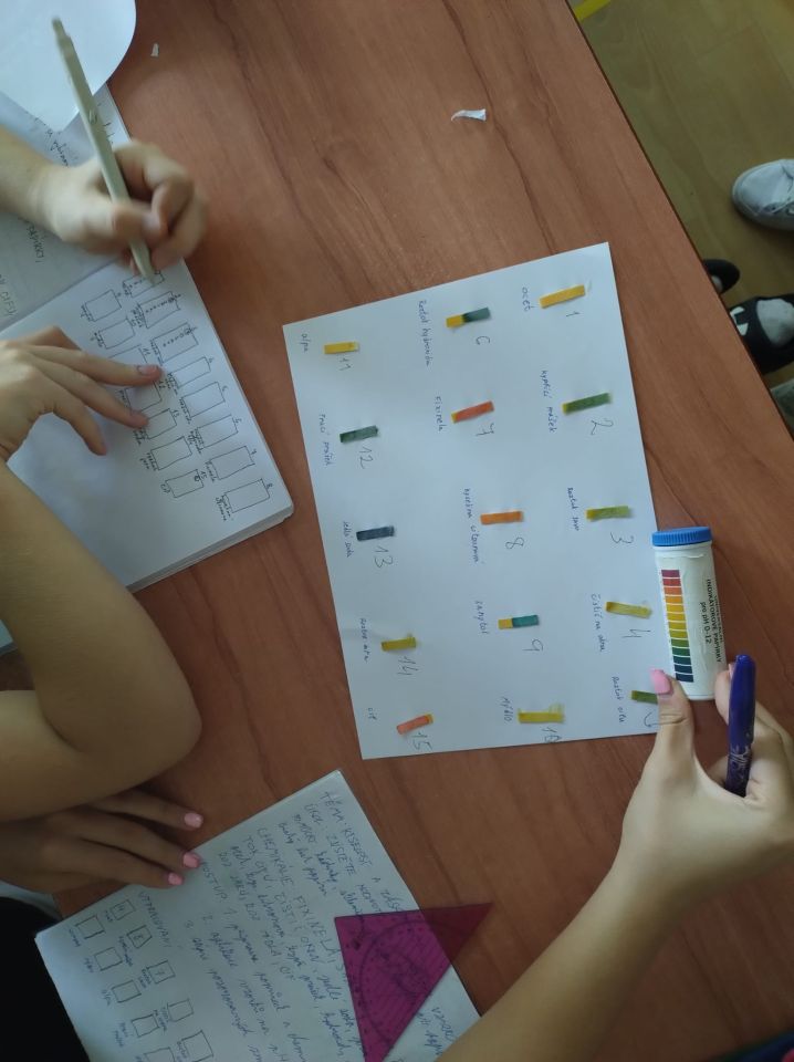 Tuto otázku jsme si položili při našem dalším bádání na hodině chemie. Tentokrát jsme se vydali po stopách domácích čistících prostředků. U vybraných vzorků jsme zjišťovali hodnoty pH pomocí standardních indikátorů. Využili jsme tak znalostí z minulých hodin, kde jsme poznali, jak se vyznačují látky kyselé nebo zásadité. A proč je to dobré vědět? Zjistili jsme, že na základě těchto vlastností, lze dané prostředky využít na odstranění vodního kamene, pokud jsou kyselé nebo dobře odstraňují organické nečistoty (tuky, oleje a bílkoviny) pokud jsou zásadité. V neposlední řadě jsme se také zabývali bezpečností práce, používáním ochranných pomůcek a poskytováním první pomoci při zasažení těmito látkami.