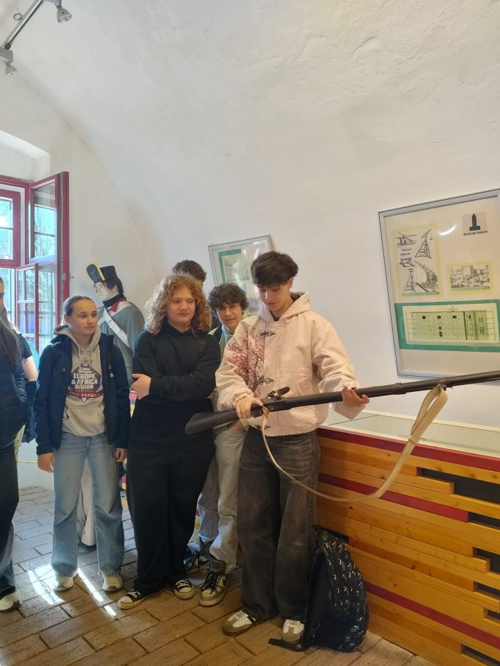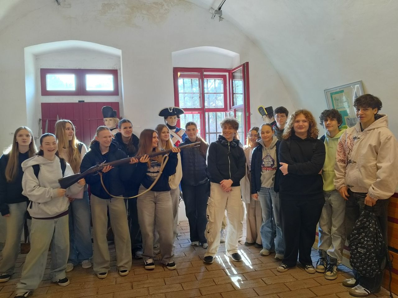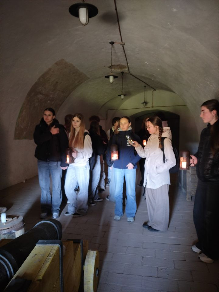 Minulý týden děti z 9.A navštívili Terezín. Ne však památník a známé židovské ghetto, ale naším cílem byla především pevnost Terezín z 18. století. Zajímavý výklad zde byl doplněn praktickou ukázkou - žáci si například mohli potěžkat historickou předovku a lépe si tak představit tehdejší způsob boje. Dobrým společným zážitkem byl také průchod podzemní chodbou potmě, který měl lehce dobrodružnou atmosféru a byl vyvrcholením prohlídky celé pevnosti.