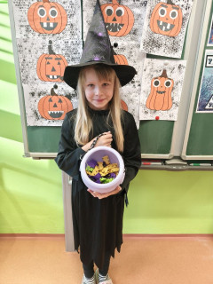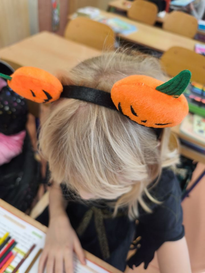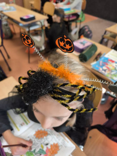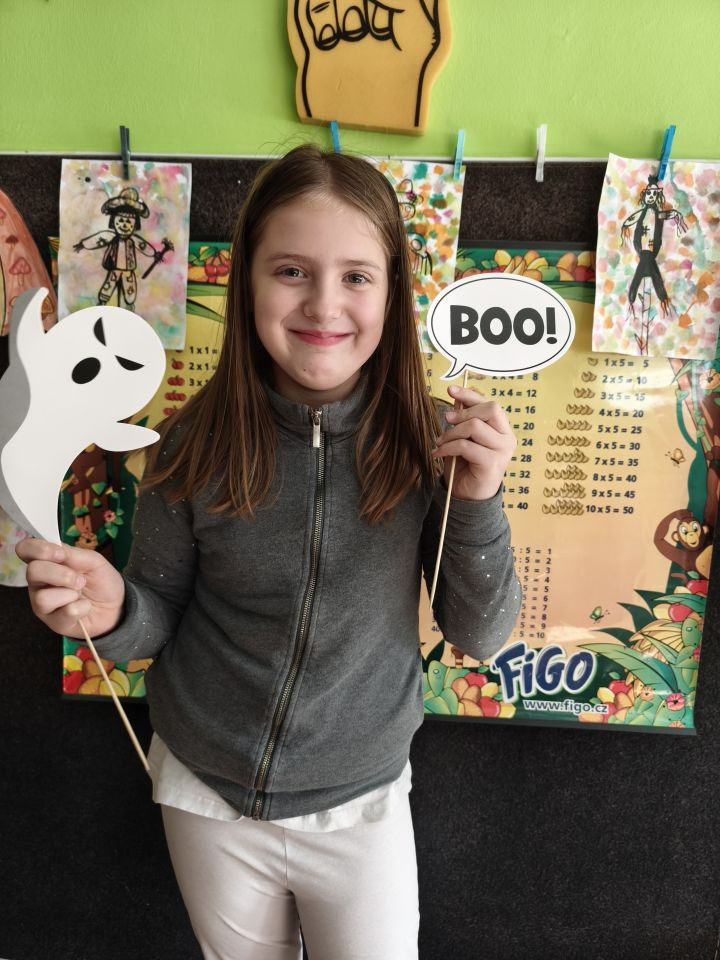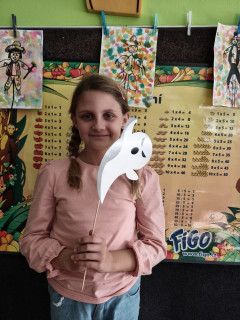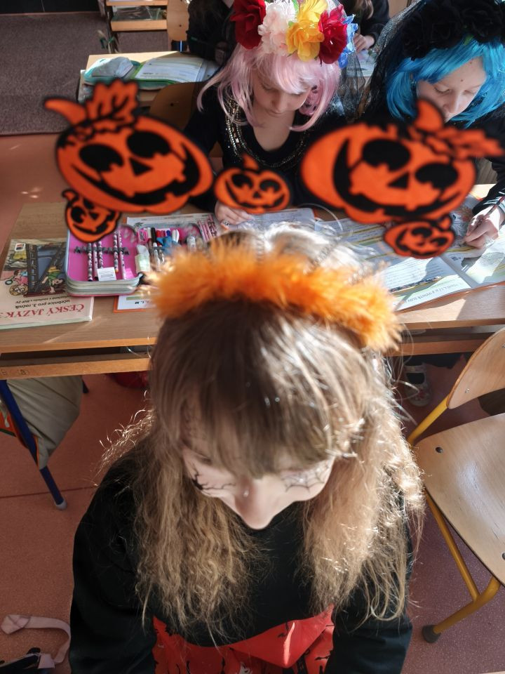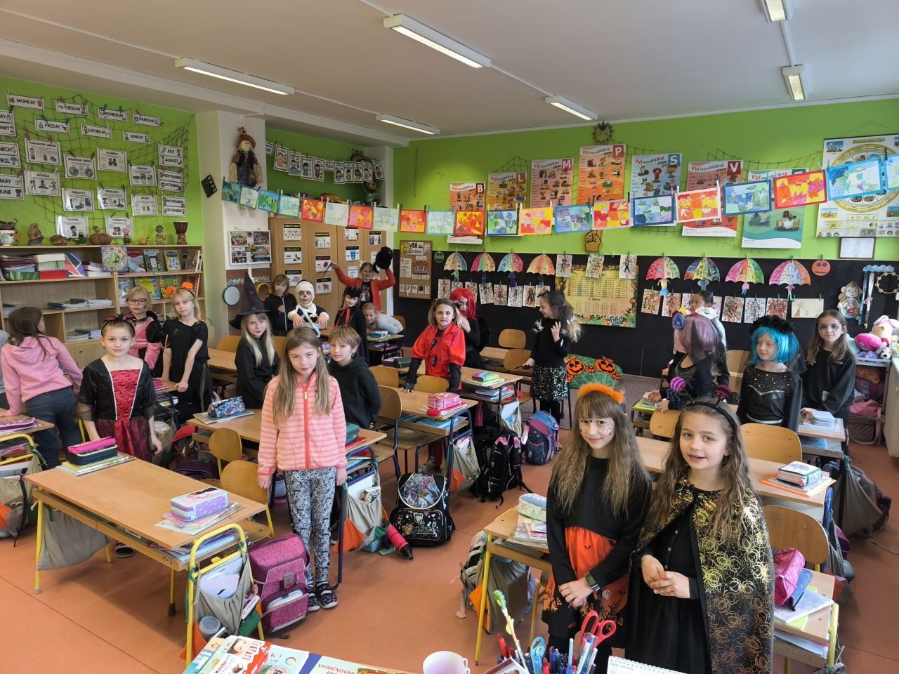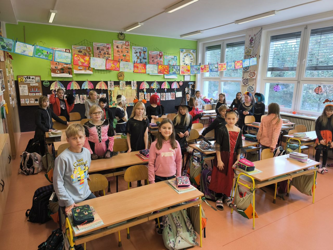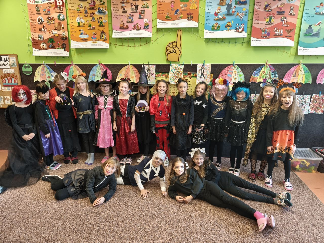 Na Halloween se děti ze 3.A opravdu vybavily. Nejen oblečení, ale i vlasové úpravy a doplňky z každého udělaly originální postavu. Nezapomněli jsme ten den také vzpomenout i na naše "Dušičky".