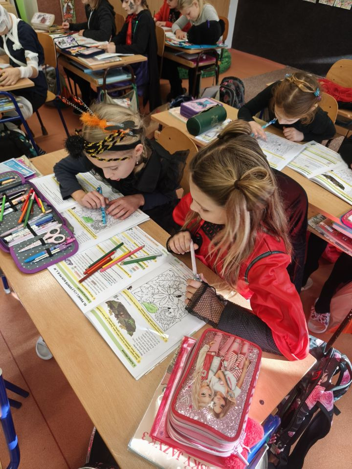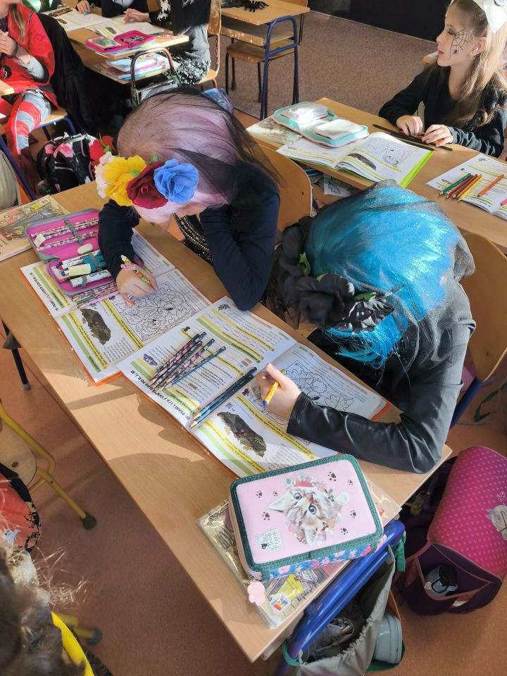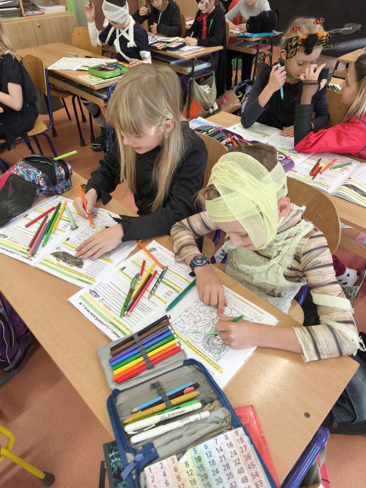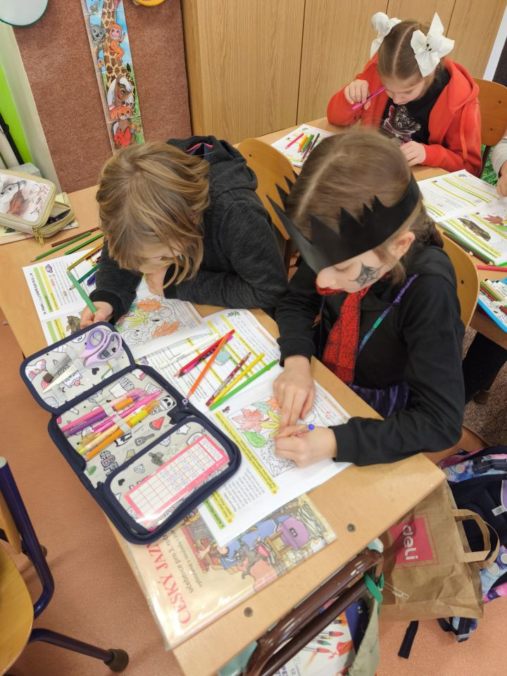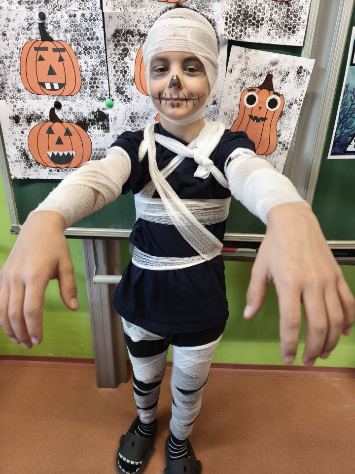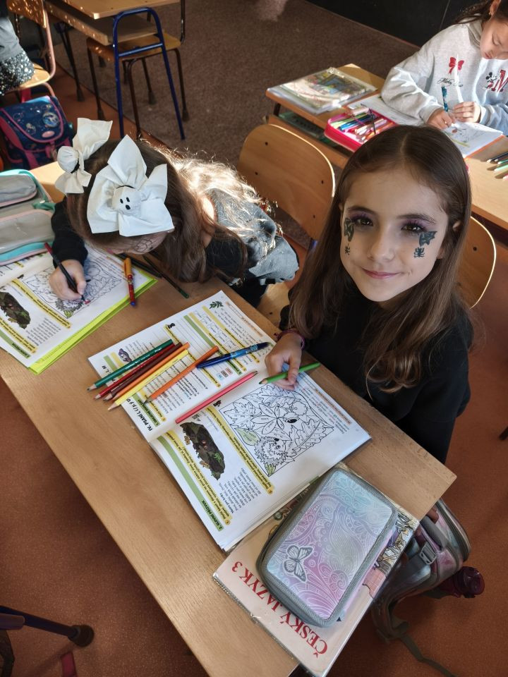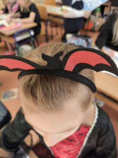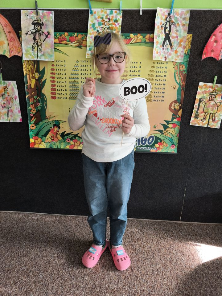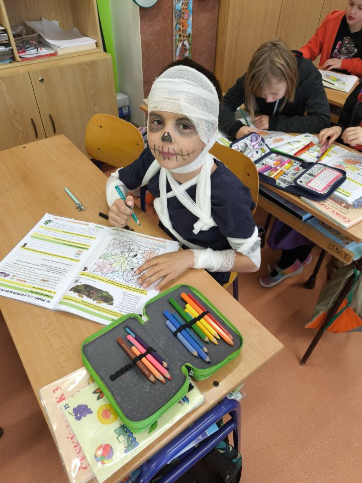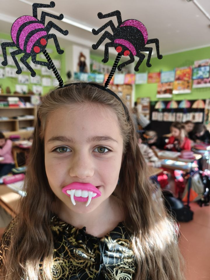 Na Halloween se děti ze 3.A opravdu vybavily. Nejen oblečení, ale i vlasové úpravy a doplňky z každého udělaly originální postavu. Nezapomněli jsme ten den také vzpomenout i na naše "Dušičky".