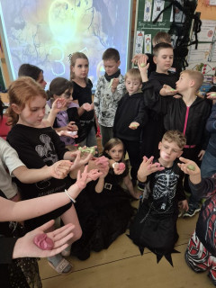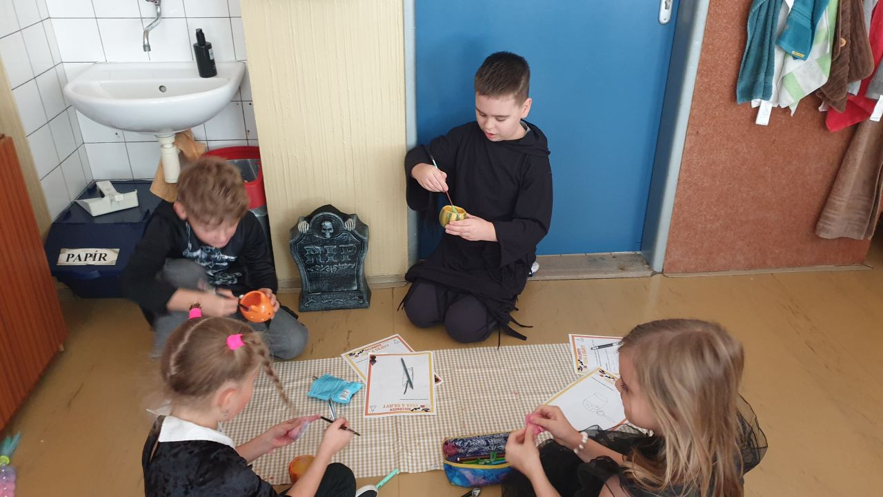 Dnes jsme si užili krásně strašidelný den. Děti se postaraly o výzdobu třídy, já o úkoly, takže jsme měli role rozdělené. Moc děkujeme za podporu všem rodičům. I díky vám na dnešní den hned tak nezapomeneme. Bylo to děsivě krásné (a taky příšerně dobré).