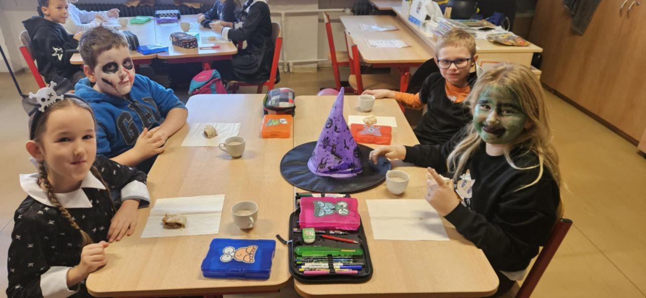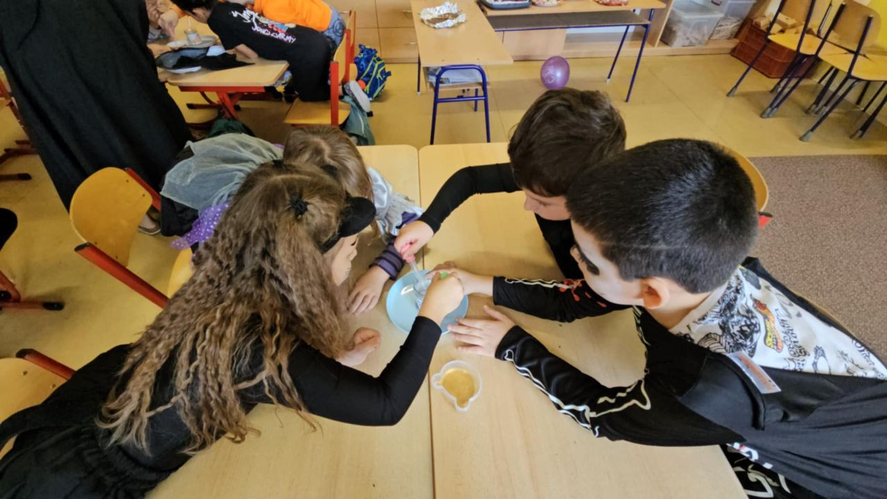 Dnešní dopoledne jsme si ve 2.D užili skvěle! Všichni přišli v krásných maskách a už od rána panovala výborná nálada. Den jsme zahájili speciální halloweenskou rozcvičkou, po které následovala tematická snídaně.