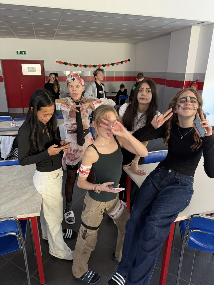 Velké poděkování patří žákům 7.D za jejich skvělou přípravu, nápaditost a trpělivost. Druháci si halloweenské dopoledne opravdu užili a už teď se těší na příští rok! 👻
