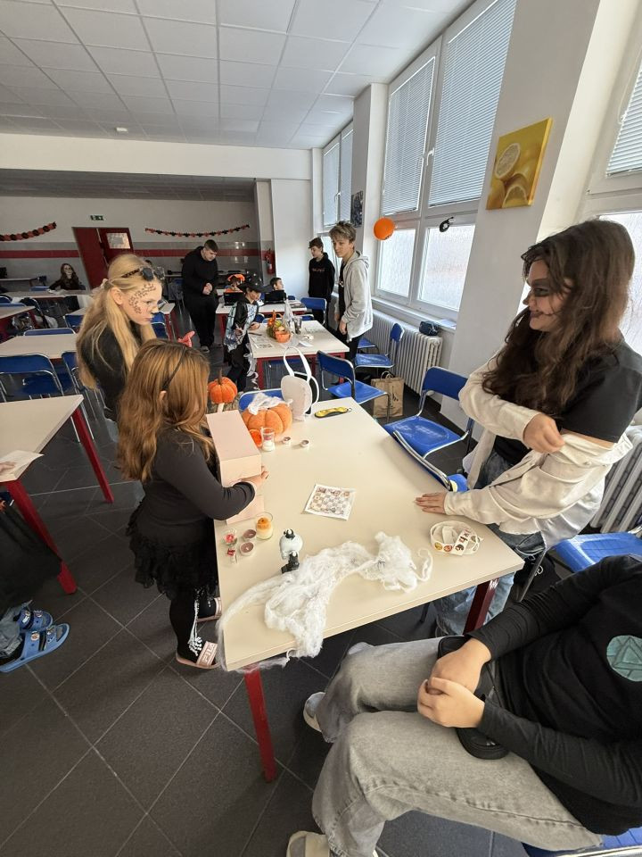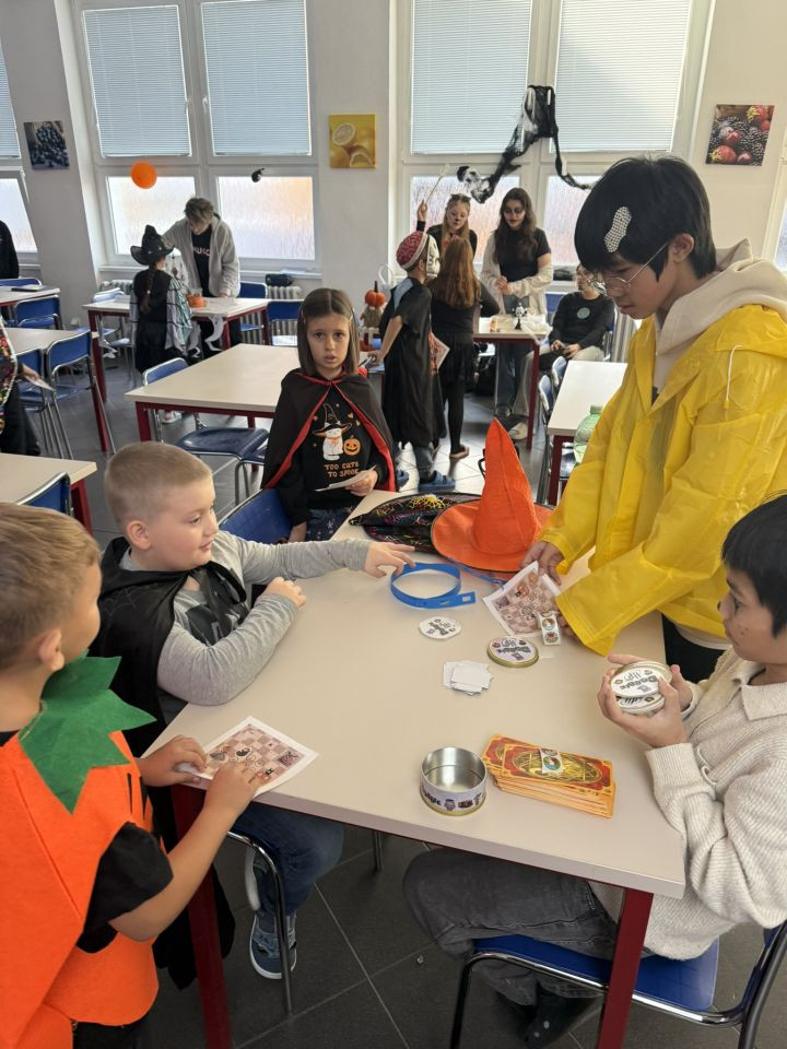 Mladší žáci si vyzkoušeli různé stanoviště, kde museli plnit úkoly s halloweenskou tematikou – luštili záhadné hádanky, hledali ztracené dýně, procvičili si angličtinu a nechyběly ani dovednostní soutěže.