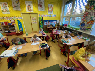 Tak od středy jsme zase spolu a jsme za to mooooc rádi!Roušky nosíme, ale při svačince sundáváme :-)