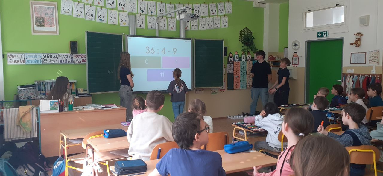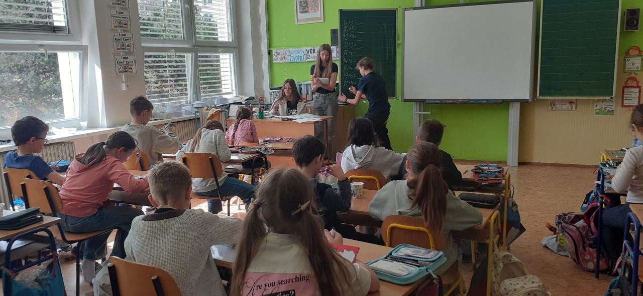 Na pátek 27. 3. jsme se těšili, protože se konal Den dětských učitelů a někteří z nás si mohli vyzkoušet, jaké to je učit. Přišli mezi nás i starší kamarádi z 8.B a spolu s nimi jsme si "učení" užili.