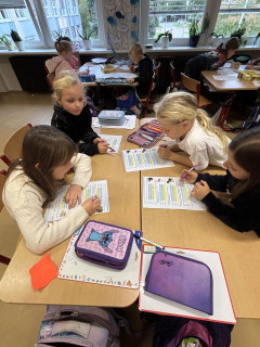 První centra aktivit ve druhé třídě byla o zvířátkách, přesněji o zvířátkách ze Zoo. V červnu jsme navštívili Zoo ve Dvoře Králové, a tak se téma doslova nabízelo. Se zvířátky si děti procvičily abecedu, malované psaní, vyřešily několik slovních úloh i matematickou tajenku, navrhly svoji zoologickou zahradu. Dozvěděly se, že 4. října mají zvířata svůj svátek.