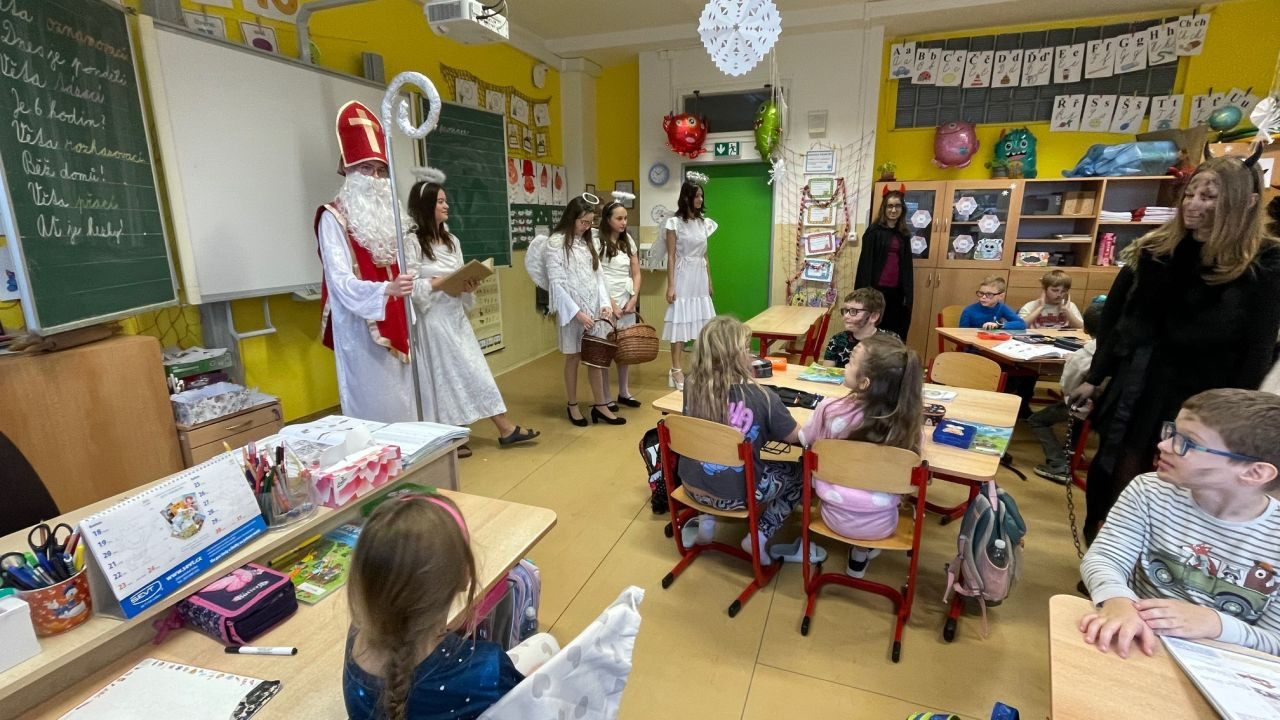 V pátek naši třídu navštívil Mikuláš se svojí družinou. Za básničku nám nadělil sladkou odměnu.