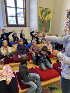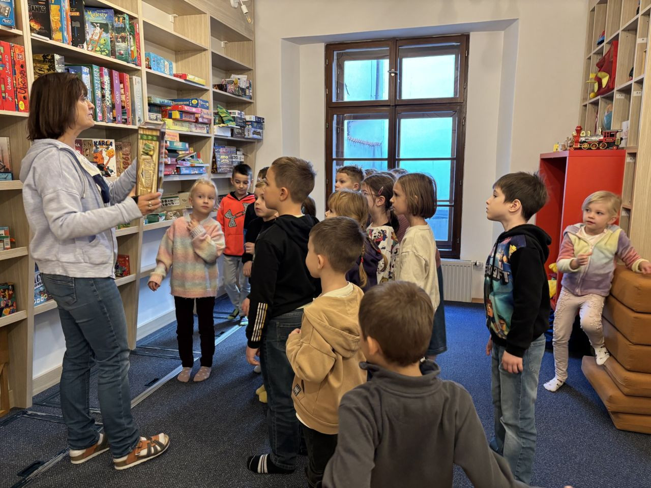 V pátek, 7. 11. 25, jsme navštívili Městskou knihovnu Pardubice. Paní knihovnice po milém přivítání dětem ukázala různé druhy knih. Děti se seznámily s dětským oddělením, poznaly maskota knihovny Vendelína. Také viděly klubovnu, kde si mohou zahrát různé společenské a deskové hry.