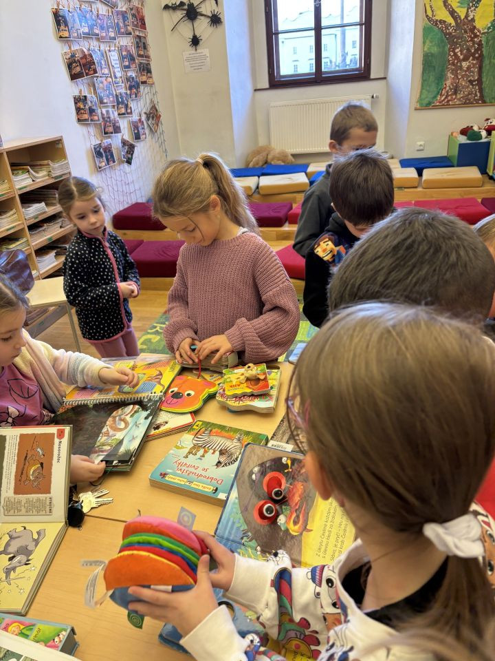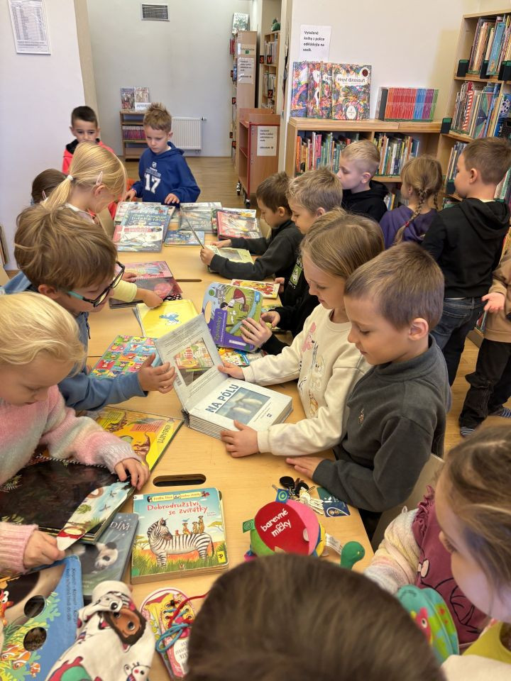 A nakonec si mohly knížky osahat, prohlédnout. Někteří žáci knihovnu již navštěvují, ale většina dětí se už určitě těší až si budou moci přečíst svoji první knížku!