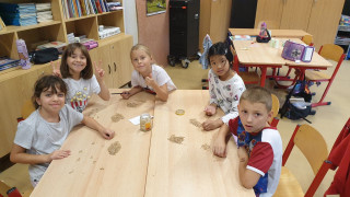 Pro toho, kdo je zvědavý, tak ve skleničkách bylo přibližně 4200 zrn. Počítali jsme ve skupinách - 4 skleničky. A jsme na sebe pyšní, že jsme to zvládli. Byla to ale fuška. Teď už ale máme lepší odhad, protože víme, jak to vypadá, když máme v hrsti 100 zrníček.