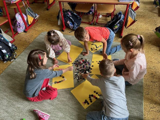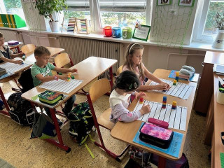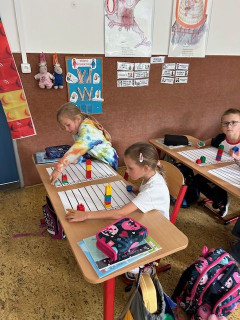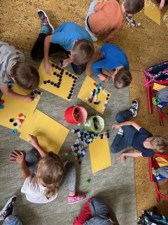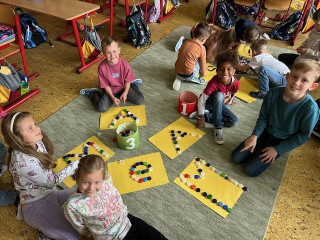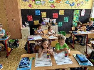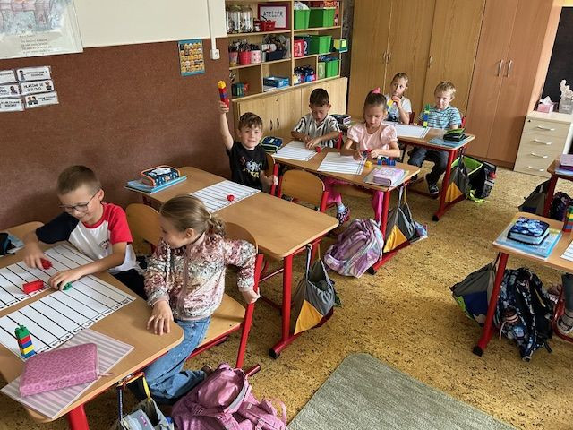 První měsíc ve škole přinesl spoustu objevů a nových dovedností. Už skládáme první slabiky, počítáme a porovnáváme čísla s legovými kostkami, které nám učení zpestřují. Velkým krokem je také první spolupráce ve skupinách-například když stavíme stavby z lega podle číselných kódů nebo tvoříme slabiky a písmena . To vše vyžaduje velkou trpělivost a týmovost.