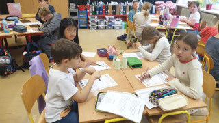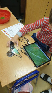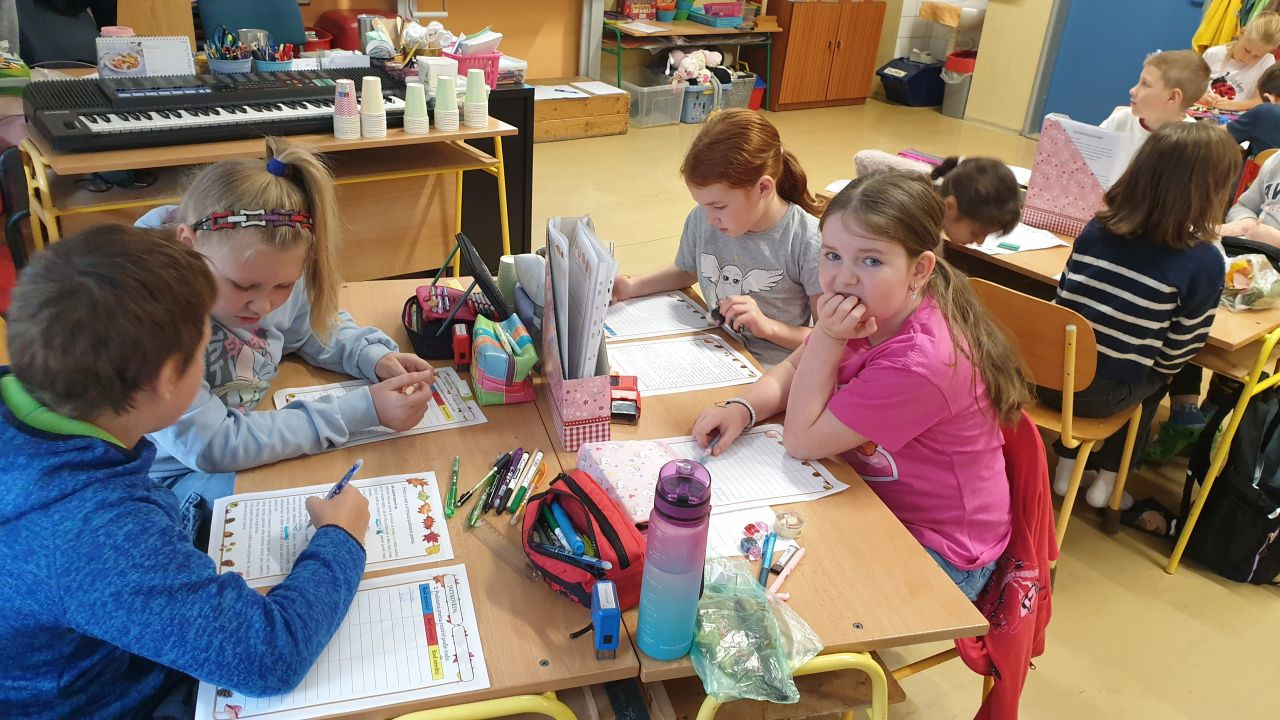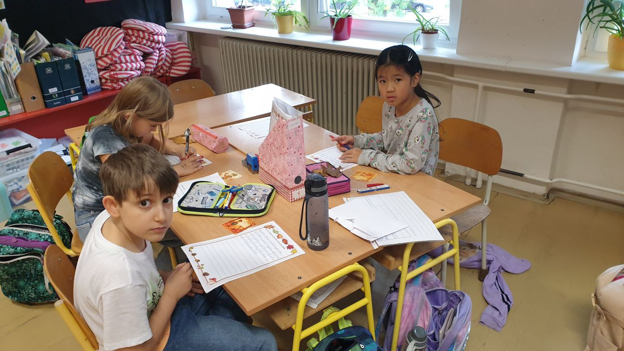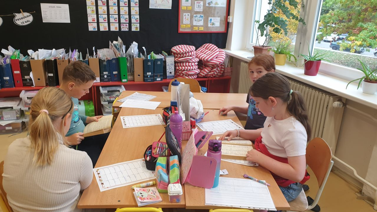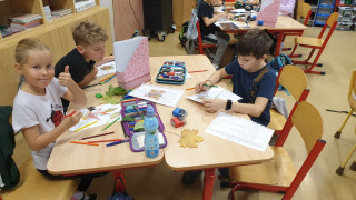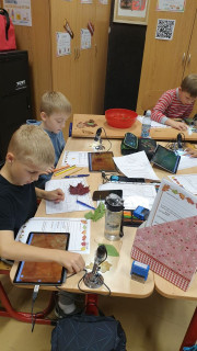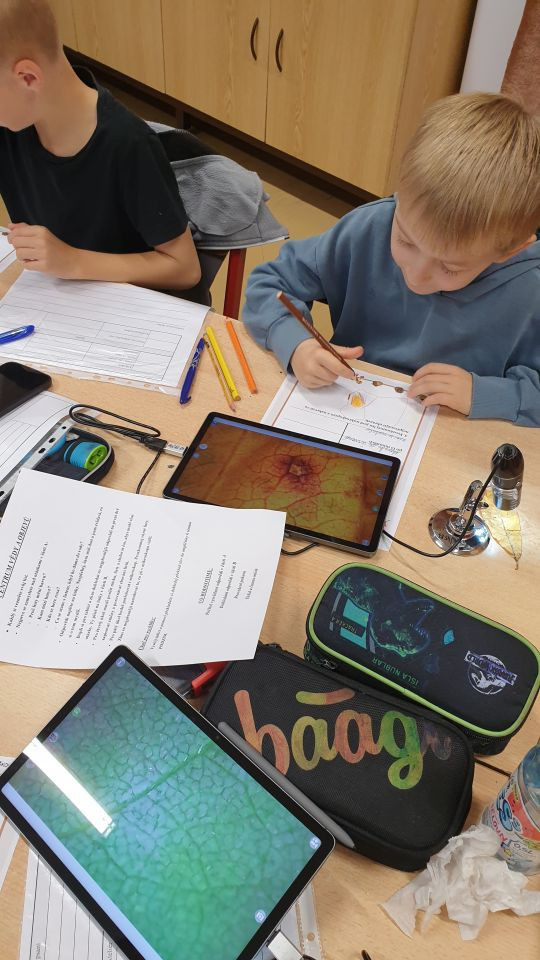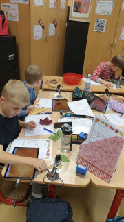 V jazykovědě jsme hledali podstatná jména a řadili do rodů, v matematice počítali a luštili podzimní hádanky, v čtenářském centru se snažili zaplnit Alfabox a popsat obrázek, v ateliéru pracovali s linií listů a ve vědeckém centru hledali fakta na tabletu a zkoumali list pod mikroskopem. Byl to nabitý týden.