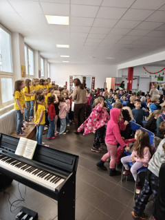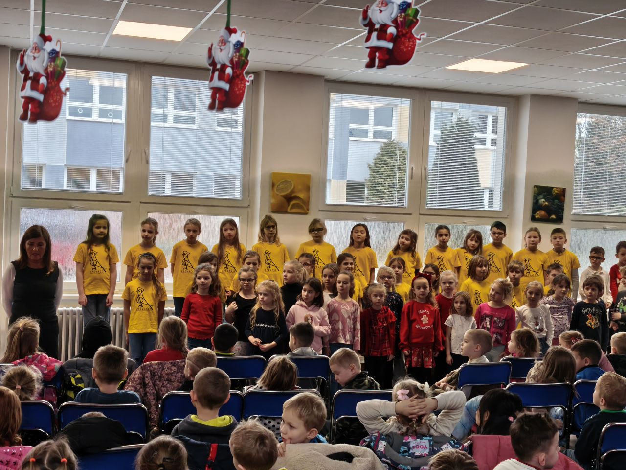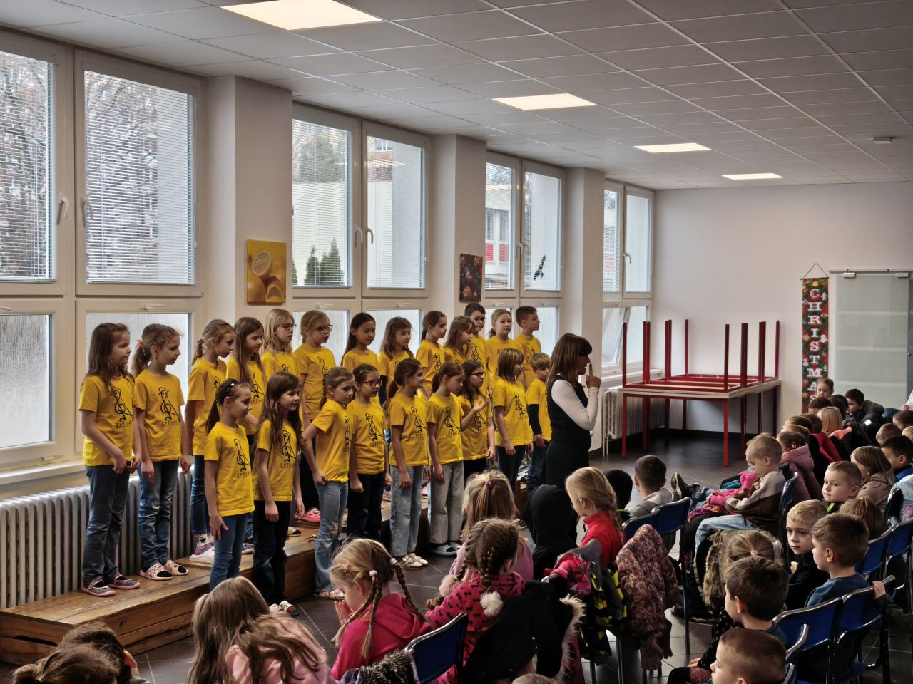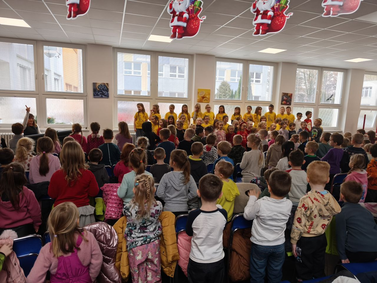 Zpěváčci z 1.A a 3.A zpříjemnili předvánoční období dětem z mateřské školky. V jídelně jim zazpívali několik vánočních a zimních písní a pak společně dohromady všichni dokázali, že znají pár vánočních koled.