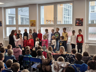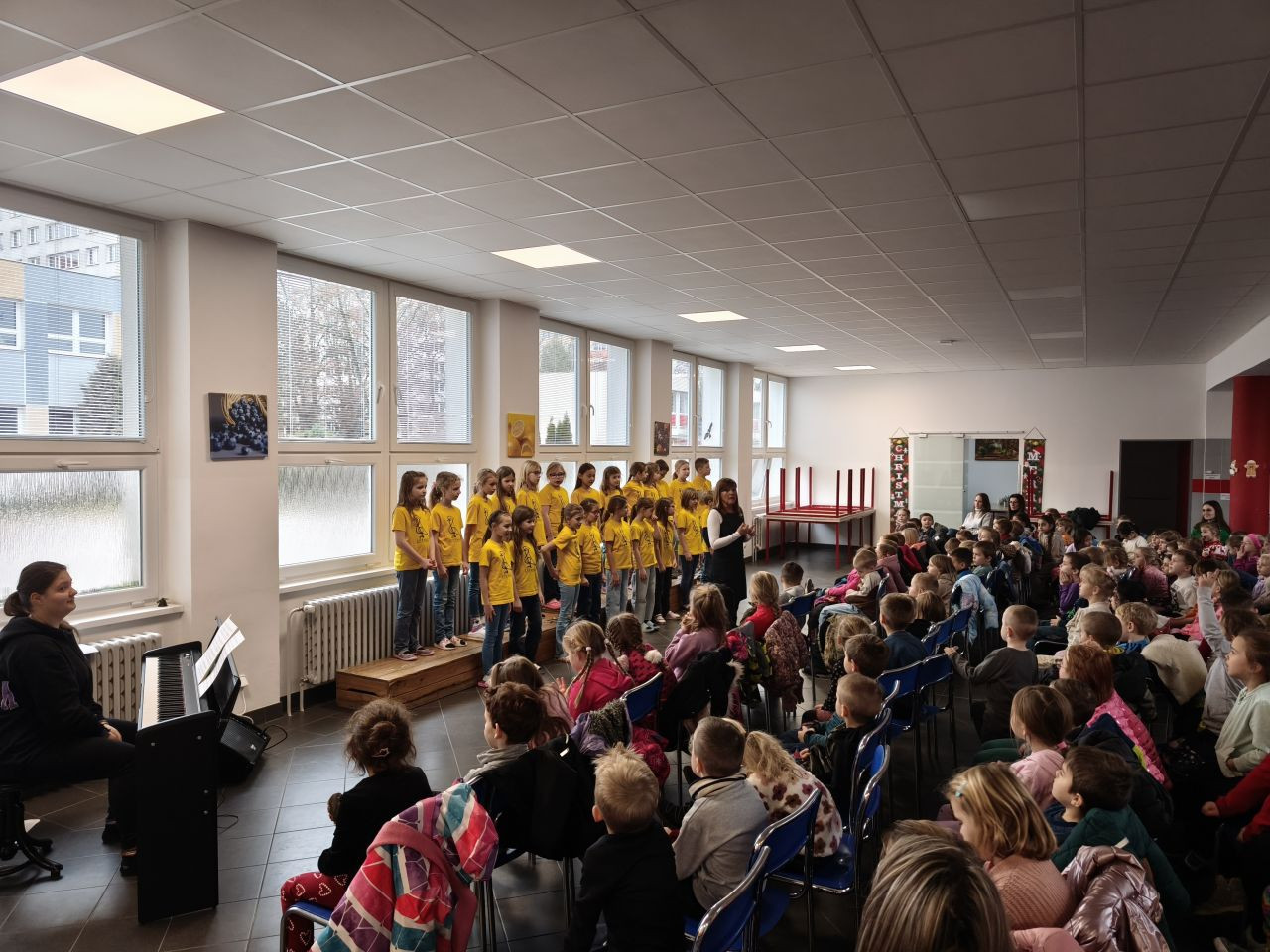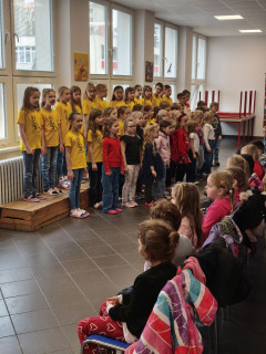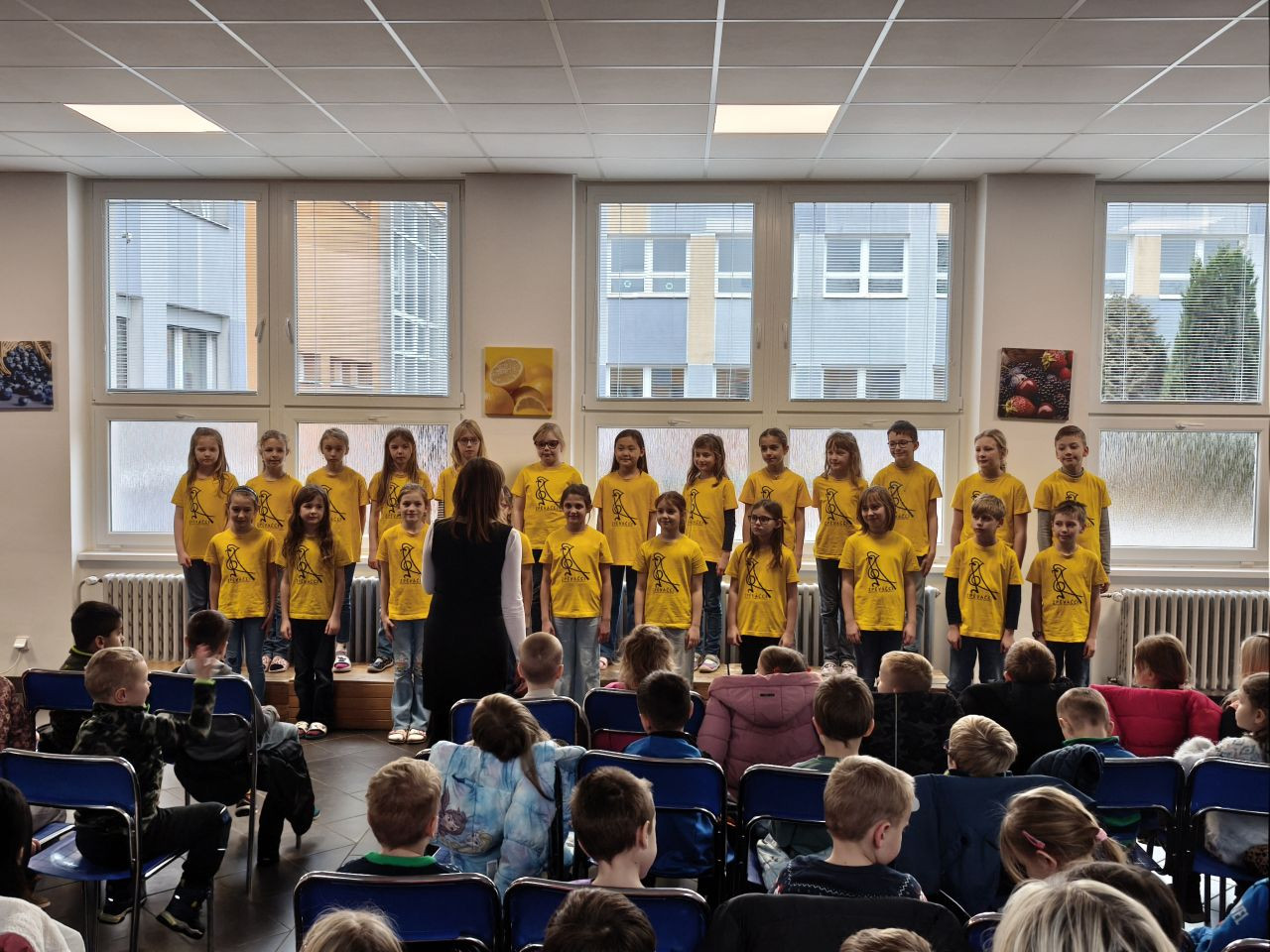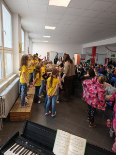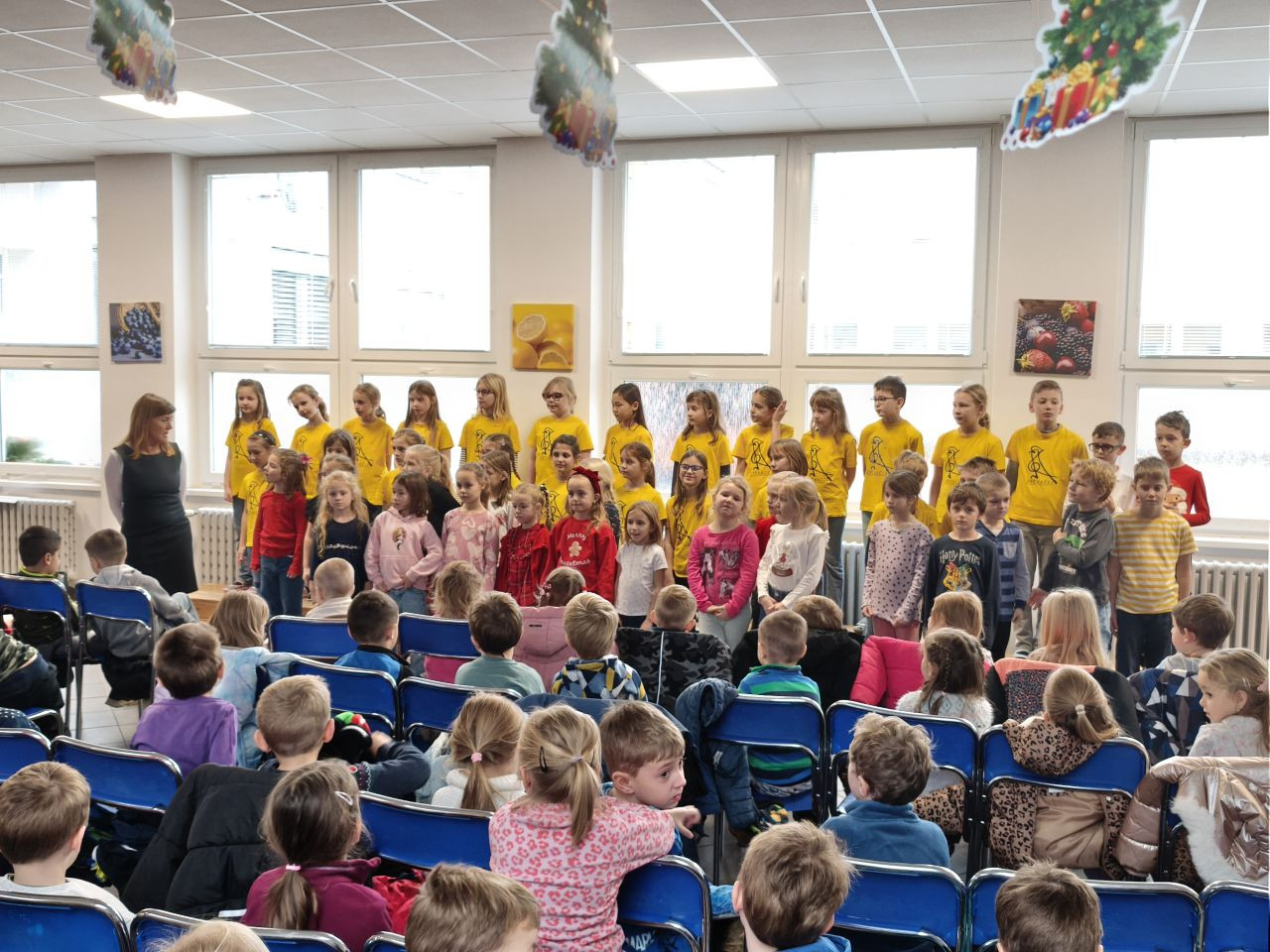 Zpěváčci z 1.A a 3.A zpříjemnili předvánoční období dětem z mateřské školky. V jídelně jim zazpívali několik vánočních a zimních písní a pak společně dohromady všichni dokázali, že znají pár vánočních koled.