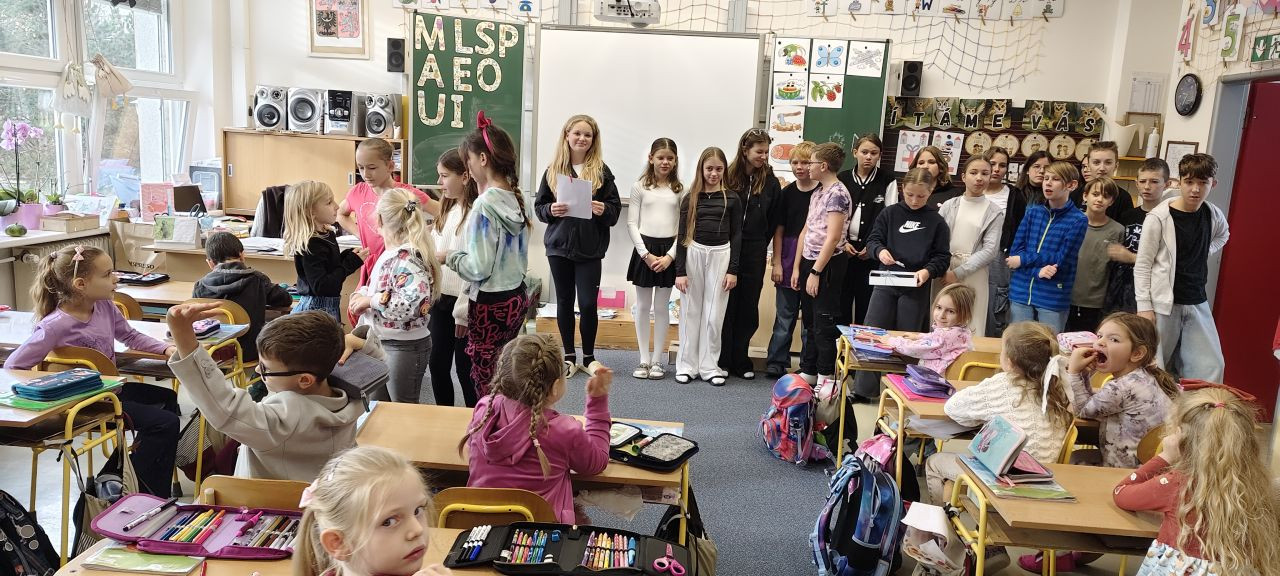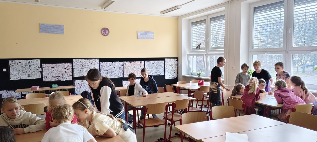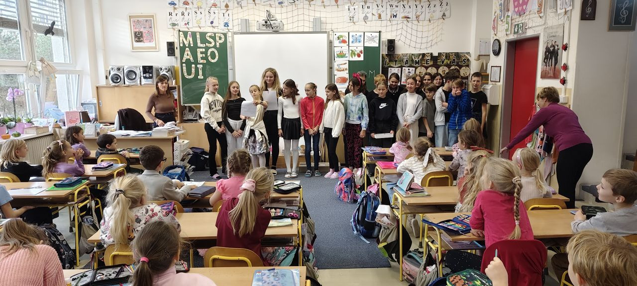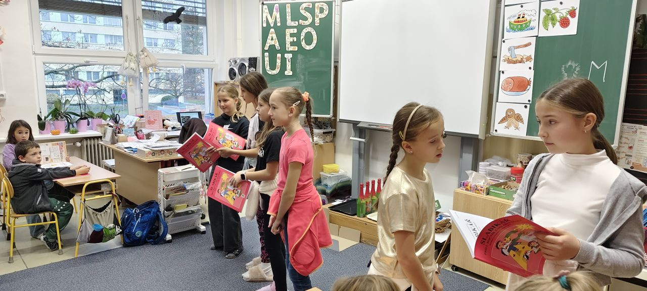V úterý 11. listopadu se první patro naší školy a třídy 1. A a 6. A staly místem, kde se usilovně přemýšlelo, plnily se soutěžní úkoly, četlo se, psalo, počítalo, zpívalo a nakonec i slavilo.