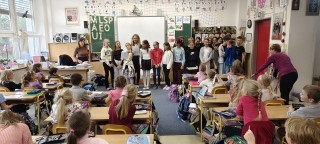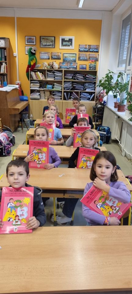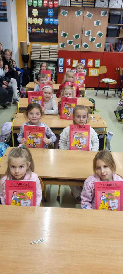 Ptáte se proč spojili prvňáčci a šesťáci své síly? Naším cílem bylo najít a získat slabikáře od černokněžníka Nečtenáře. A to se POVEDLO. Černokněžník nakonec nebyl tak zlý, nové slabikáře ukryl u pánů zástupců. To bylo radosti, když jsme v nich mohli poprvé listovat. Celou slavnost slabikáře jsme si moc užili.