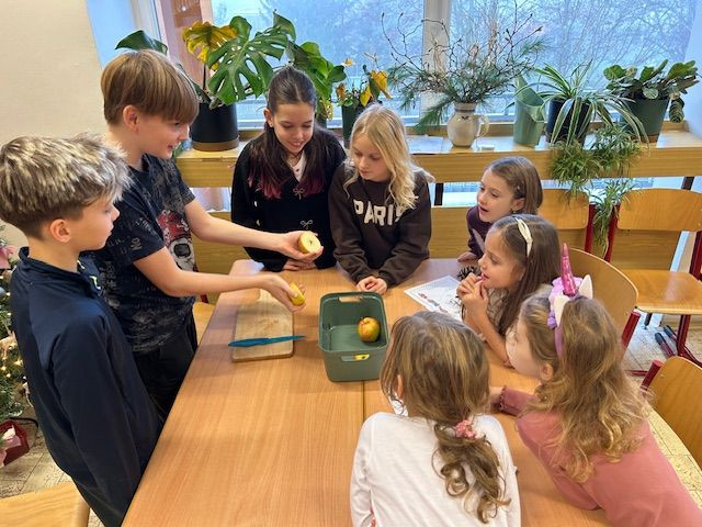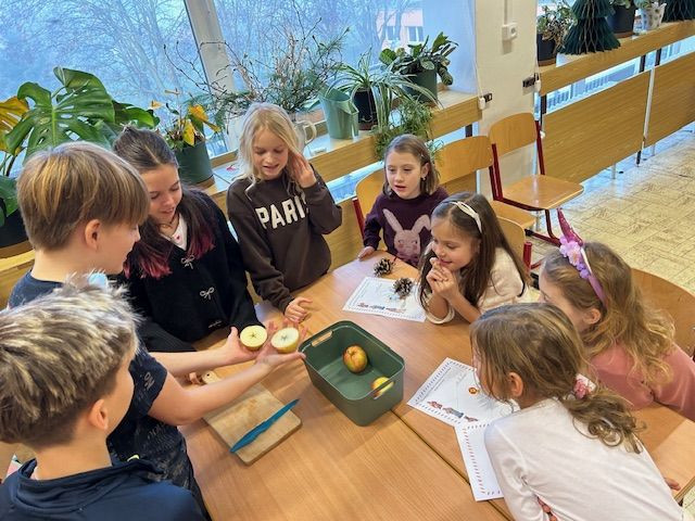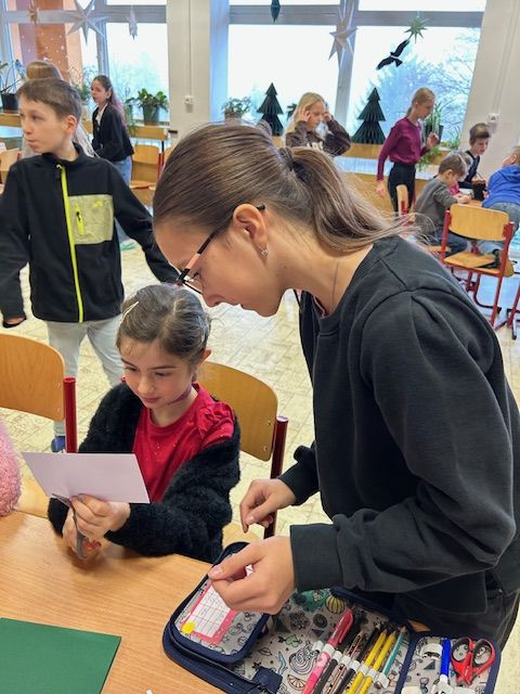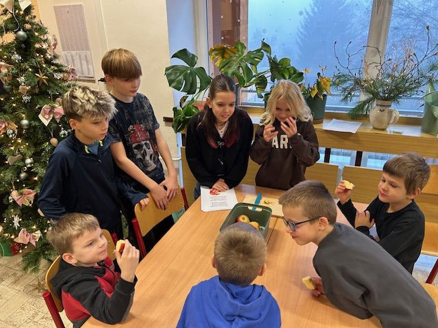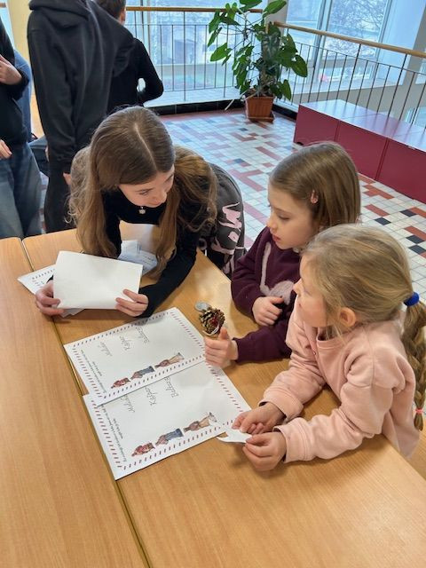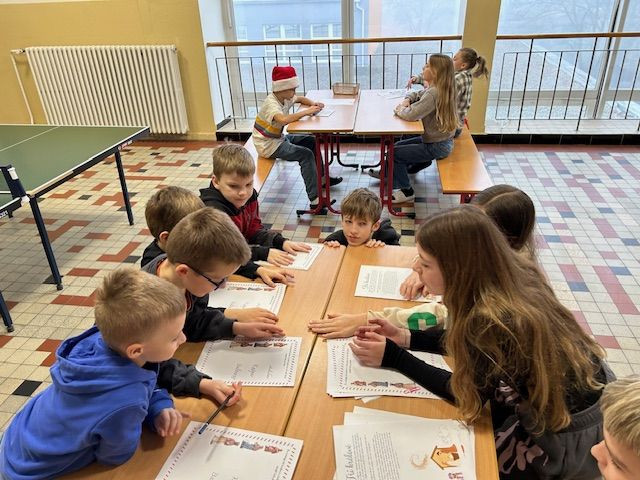 V předvánočním čase se sešli prvňáčci s jejich patrony- 6.B a naladili se ve společném projektu na vánoční svátky. Šesťáci se pečlivě připravili a provázeli prvňáčky vánočními dílnami, kde se tvořilo, vyrábělo, naslouchalo. Byli velmi trpěliví a prvňáčci jim za to zatancovali. Všichni si to užili !