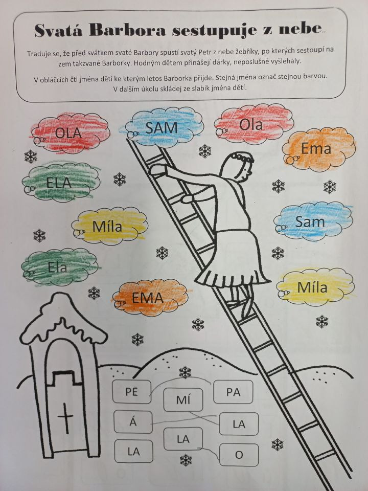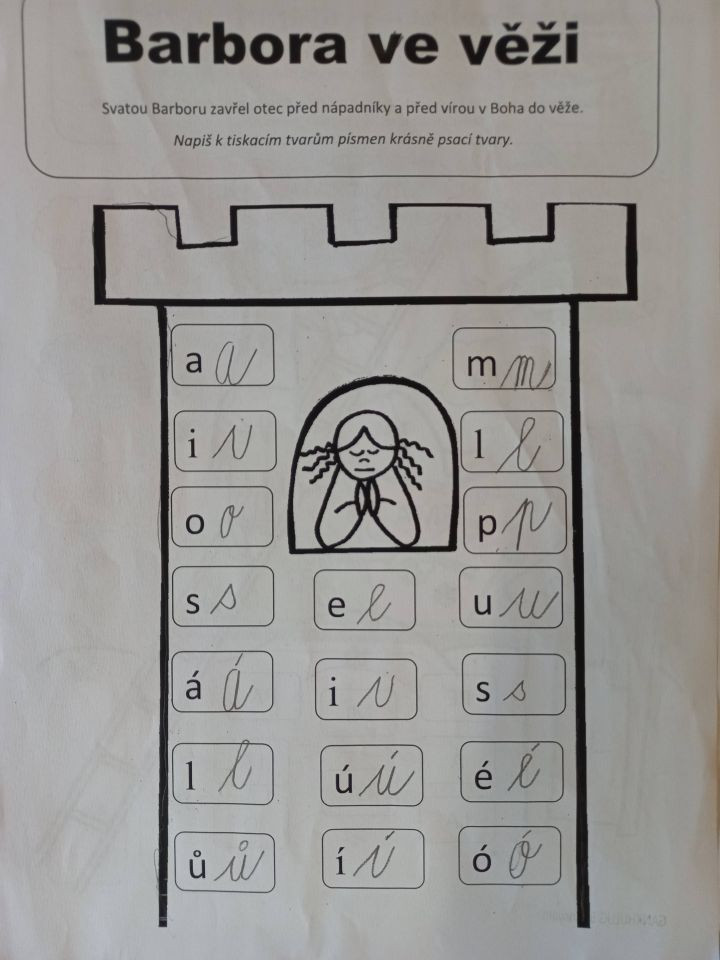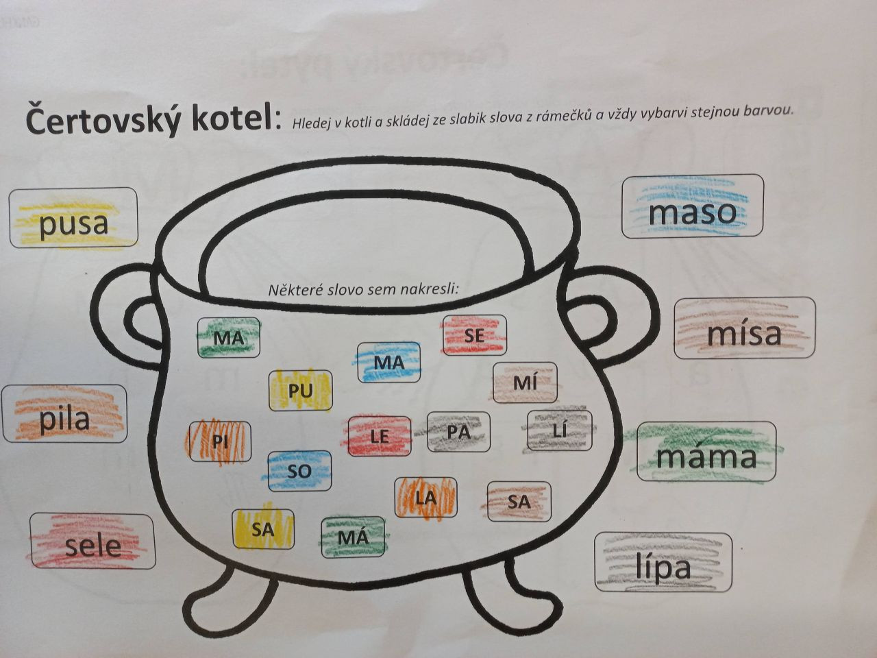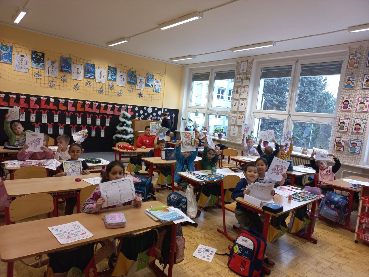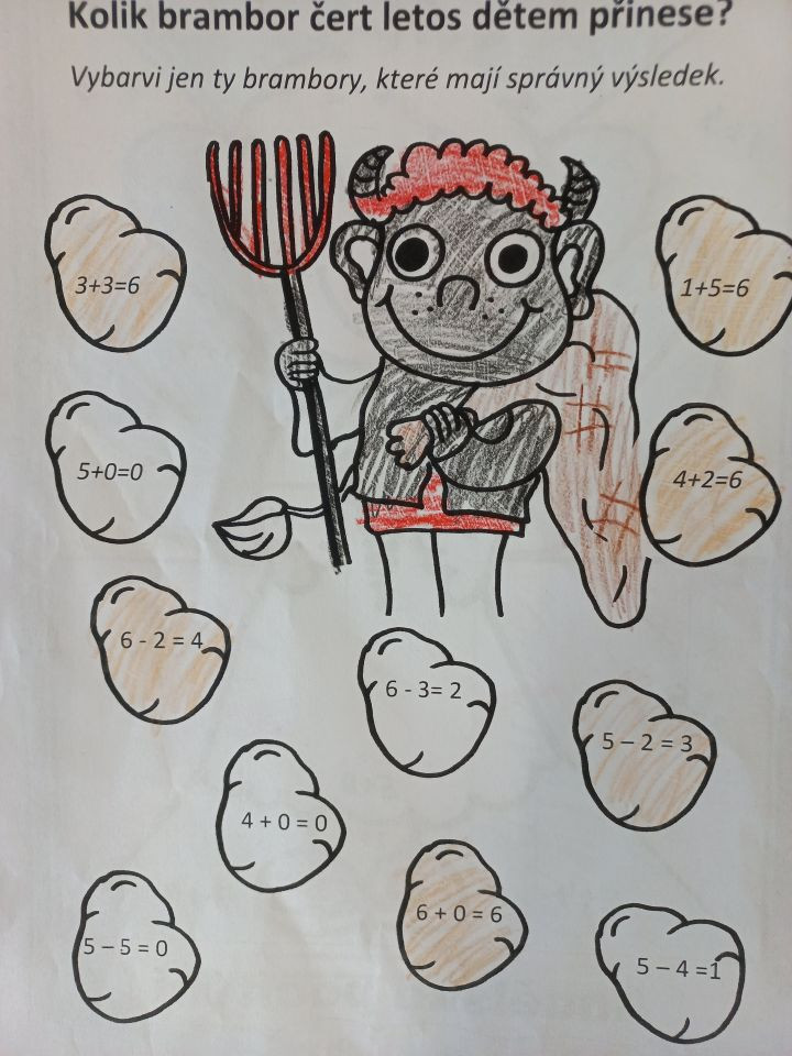 V hodinách českého jazyka a matematiky žáčci vypracovali pracovní listy k těmto tématům zaměřené na opakování a procvičování učiva. Součástí vypracování bylo vybarvování, stříhání a lepení. V oddechovém čase nechybělo několik pohádek, které žáčci zhlédli.