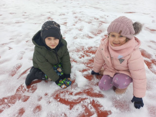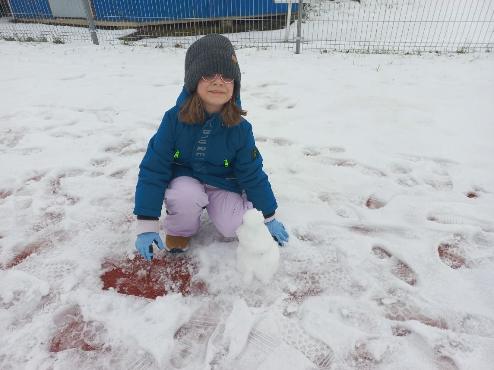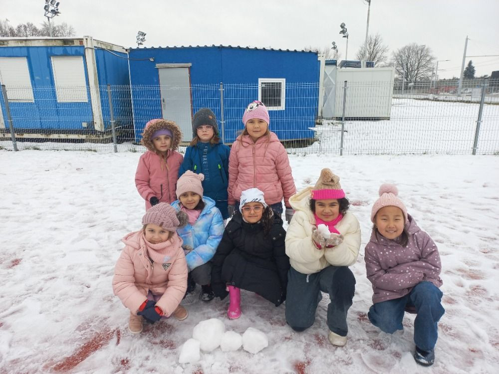 Hodinu tělesné výchovy jsme si užili na školním hřišti. Stavění sněhuláků, iglú, zvířátek a nakonec pořádná koulovačka.