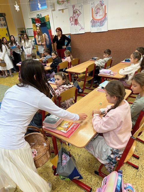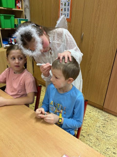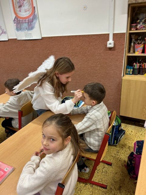 Tři králové s anděly nás navštívili, aby nám vyprávěli svůj příběh. Když děti z 1.B zodpověděly všechny otázky, dostaly sladkou odměnu a společně jsme si zazpívali. Děkujeme 5.A a 8. A a paní učitelce Sládkové.
