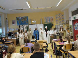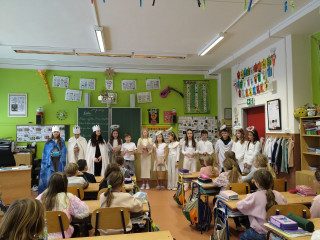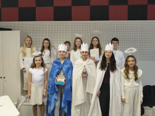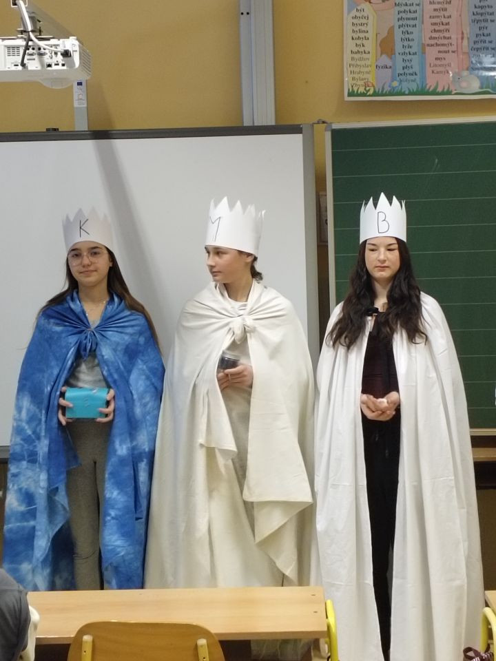 V pátek 9.1. ve škole proběhla obchůzka Tří králů. Děti z 9. A a 5.A si připravily pásmo, ve kterém seznámily spolužáky s tradicí a významem v minulé i dnešní době.. Tříd na prvním stupni je hodně a tak byly vytvořeny 3 rovnocenné skupiny, které si je rozdělily.
