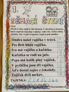 Poslední dny před prázdninami jsme si připomněli tradice a zvyky, které v době Velikonoc dodržujeme. Děti s chutí vyplňovaly pracovní listy, kde zúročily své znalosti z matematiky, českého jazyka a prvouky. Vyráběly velikonoční zajíčky a papírové kraslice.
