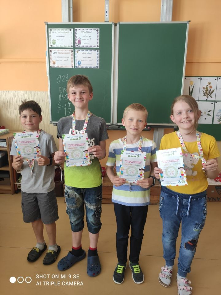 Ve čtvrtek, 12. 5. 2022, jsme měli ve třídě zajímavý program. S paní Hedvikou jsme si povídali o zdravé výživě. Děti se dozvěděly, jak se správně stravovat. Během dvou vyučovacích hodin plnily ve skupinkách různé úkoly a zkusily si také sestavit správný jídelníček - snídani a svačinu. A protože se všechny snažily, každý dostal drobnou odměnu a celá třída také certifikát o absolvování programu Zdravá pětka a hru do třídy. Bylo to velmi poučné a zajímavé!
