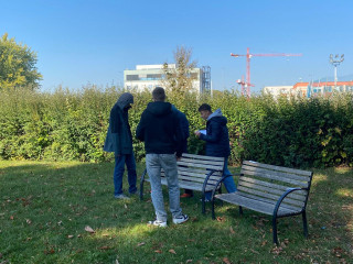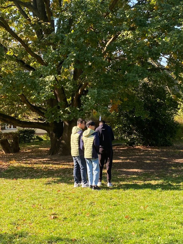 Předpověď počasí na pátek 3.10. vybízela k venkovní aktivitě, a tak jsme spolu se třídou 9.C zopakovali způsobová slovesa trochu netradičním způsobem.